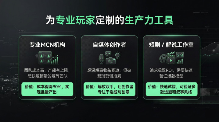 对自媒体创作家来说,最大的价值是你终于不错一个东谈主作念恐怖片评释了。往时这件事基本是责任室的专利,因为个东谈主根柢扛不住素材处理的责任量。现时你不错把素材处理交给器具,我方专注在选题、案牍和立场上。