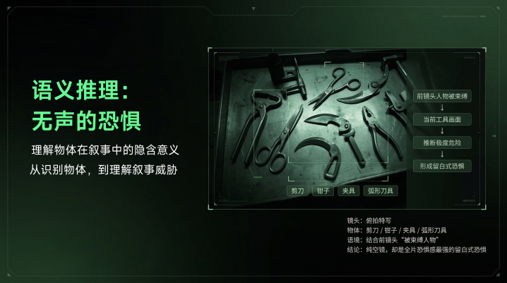 它能帮的第二件事是把心计和画濒临上。你的案牍里写「他感到一阵寒意」,它能给你匹配上那些画面里莫得明显作为、但氛围不合的镜头。这类镜头在恐怖片里迥殊多——一个俯拍的桌面上摆着几件器具、一扇半开的门、一个走廊很是的暗影——这些镜头在传统素材惩处系统里根柢没法检索,因为它们莫得「事件」,唯有「氛围」。但恐怖片真实的恐怖感恰正是从这些镜头里来的,业内叫它留白式畏缩。把这类镜头找出来并和对应的案牍对上,这一步在往时是唯有资深编著师脑子里才有的隐性常识,现时被器具接住了。