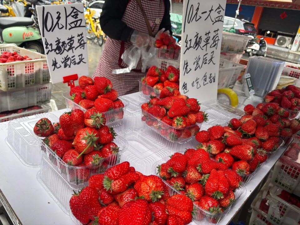除了生果批发阛阓外,路边摆摊的草莓商贩所售价钱一样实惠。记者在大智路地铁站A口出站发现,一家摊位前站满了前来“尝鲜”的消耗者。据了解,该摊位依然售卖三年了,草莓售价为10元一盒,均为商户挑选装盒。上秤称重一盒分量在2斤2两傍边,稍大个头草莓单个能达90克。