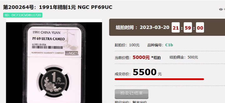 今天最主要来先容的是1991年的牡丹1元硬币,它是属于开门币。这个年份也有刊行精制币。全球看,这是前两年在网上的拍卖会上拍出的一枚1991年的牡丹1元硬币精制币,评级达到了NGC PF 69 UC的评分,成交总价是5500元,高涨的是曲常的多。