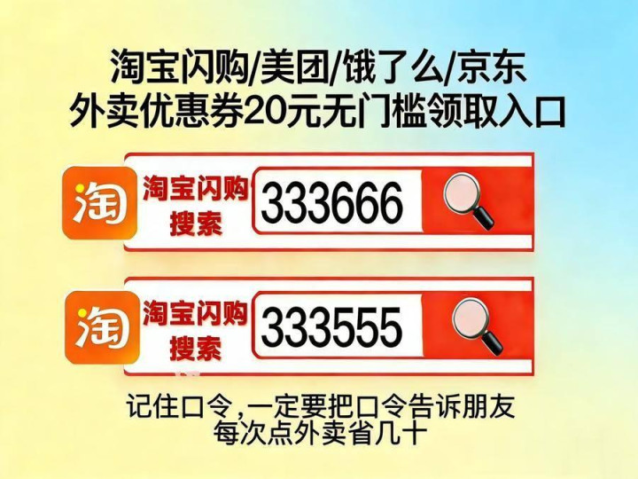 淘宝闪购外卖券领取淘宝闪购搜【333666】【333555】,淘宝闪购外卖券重叠券领取进口是淘宝闪购搜【333666】,淘宝闪购优惠券外卖红包重叠券/延长券/爆红包/逐日领取,记取口令,淘宝闪购搜【333555】领外卖神券包。