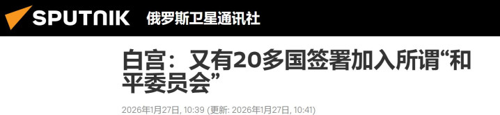 1月27日,白宫新闻秘书卡罗琳带来的消息,让特朗普嘴角扬起笑意。距离达沃斯那场尴尬“冷场”还不到一周,又有20多个国家的名字被填进新表格,加入了美国牵头的“和平委员会”。