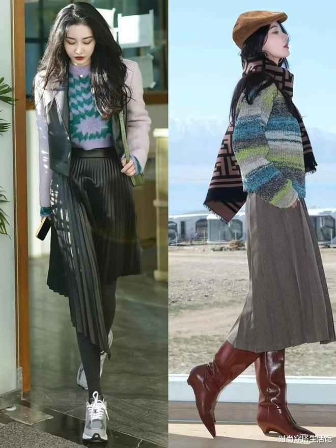此外关于三四十岁的女东说念主,如果我方的肉体比拟纤薄的话,亦然可以像小女生一样聘用一条恰当我方的短款百褶裙。短款百褶裙尽量搭配高腰的名目,通过细腻、立体的百褶剪裁,塑造出愈加纤薄的腹部线条。短款百褶裙,非论是配乐福鞋已经长筒靴,齐可以显得双腿纤细。